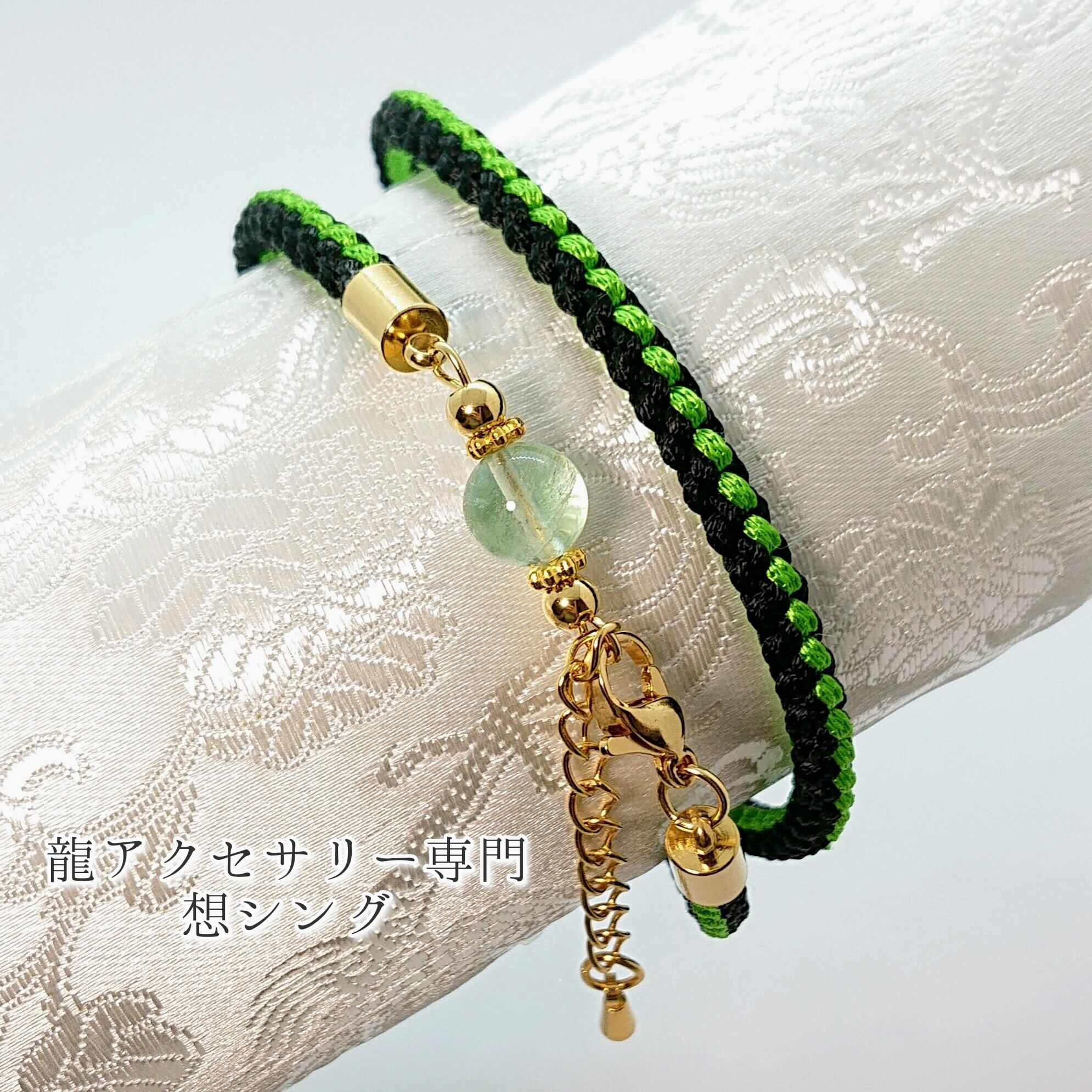 組紐ブレスレット11【ネオドラゴン*黒龍&グリーンフローライト】